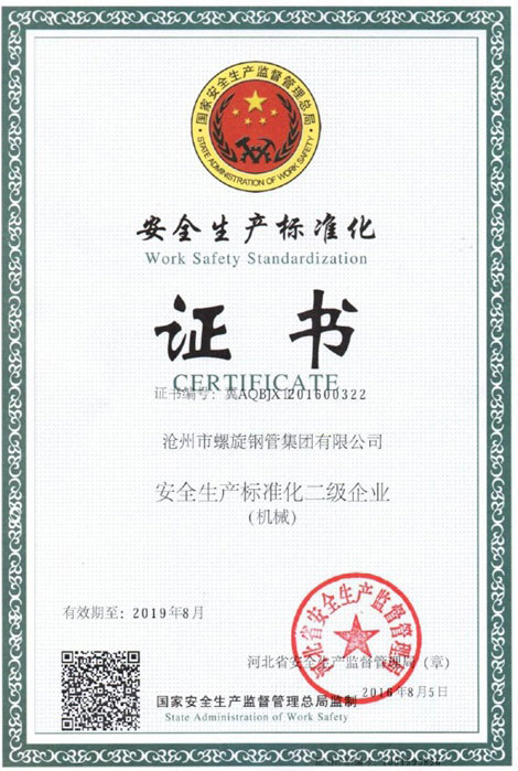 安全生產(chǎn)標準化證書