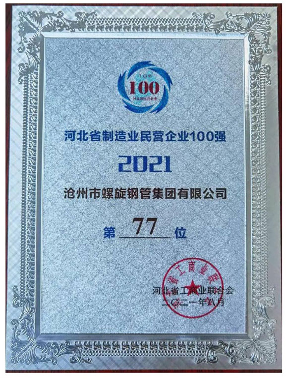 河北省制造業(yè)民營企業(yè)100強